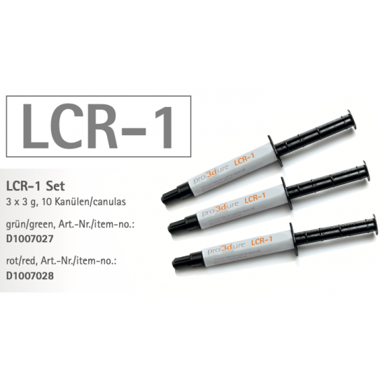 Das LCR-1 ist ein lichthärtendes Gel für eine Vielzahl von Indikationen. Dazu zählen z. B. der Einsatz in der Formgießtechnik, als Ausblockmaterial für Bleachingschienen und in sehr vorteilhafter Weise als Reparaturmaterial für 3D-Druck-Gussobjekte. Das Gel ist thixotrop, deshalb standfest und optimal kontrollierbar beim Modellieren. LCR-1 hat einen geringen Schrumpf und bietet so eine aussergewöhnliche Dimensionsstabilität und Passgenauigkeit. Es verbrennt rückstandsfrei.