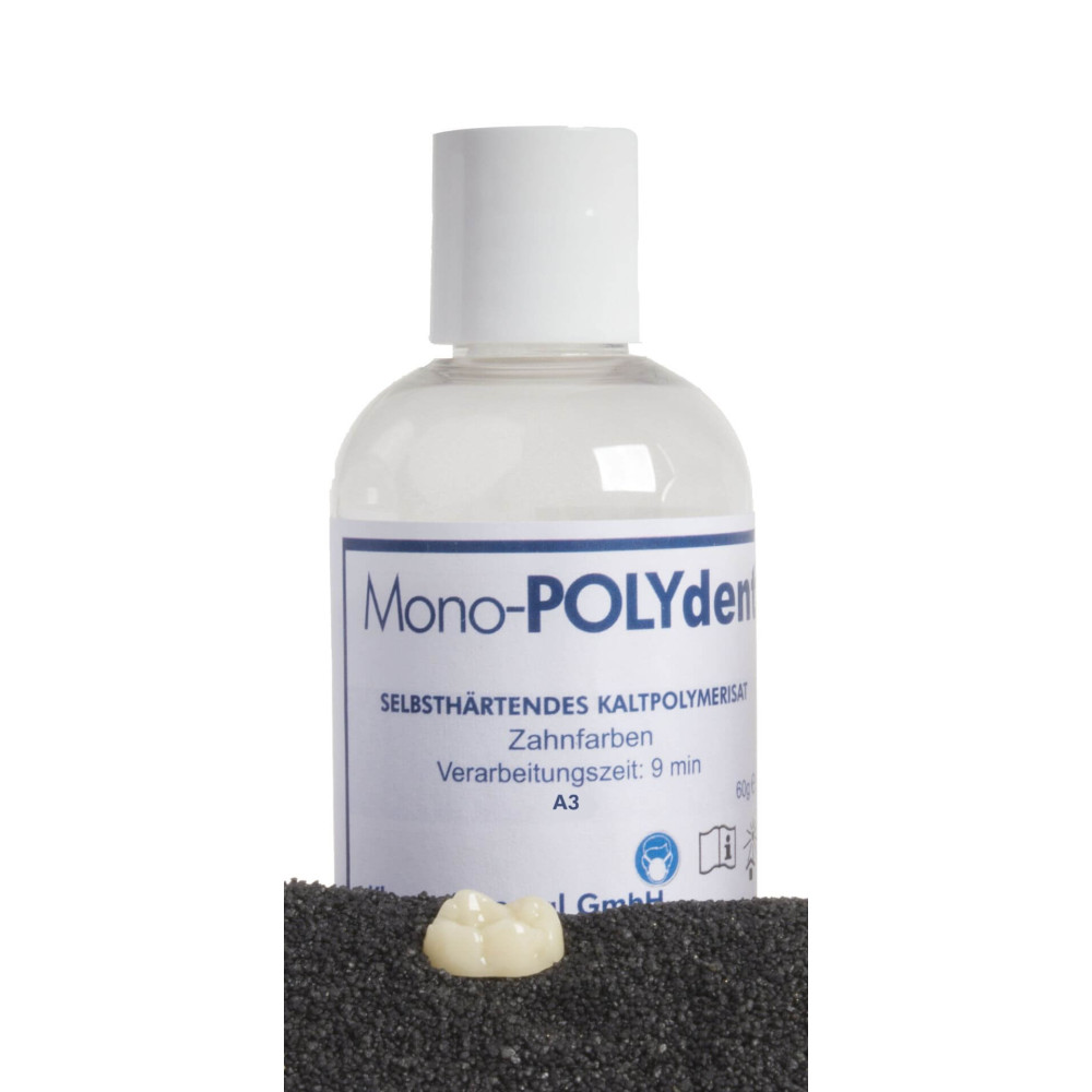 Mono-POLY dentin hat als Autopolymerisat sehr gute physikalische Eigenschaften und mechanische Werte, geprüfte und zertifizierte Biokompatibilität, natürliche Farbgebung, kurze Abbindezeit. Mono-POLY dentin wird empfohlen für Langzeit-Provisorien und prothetische Versorgungen.