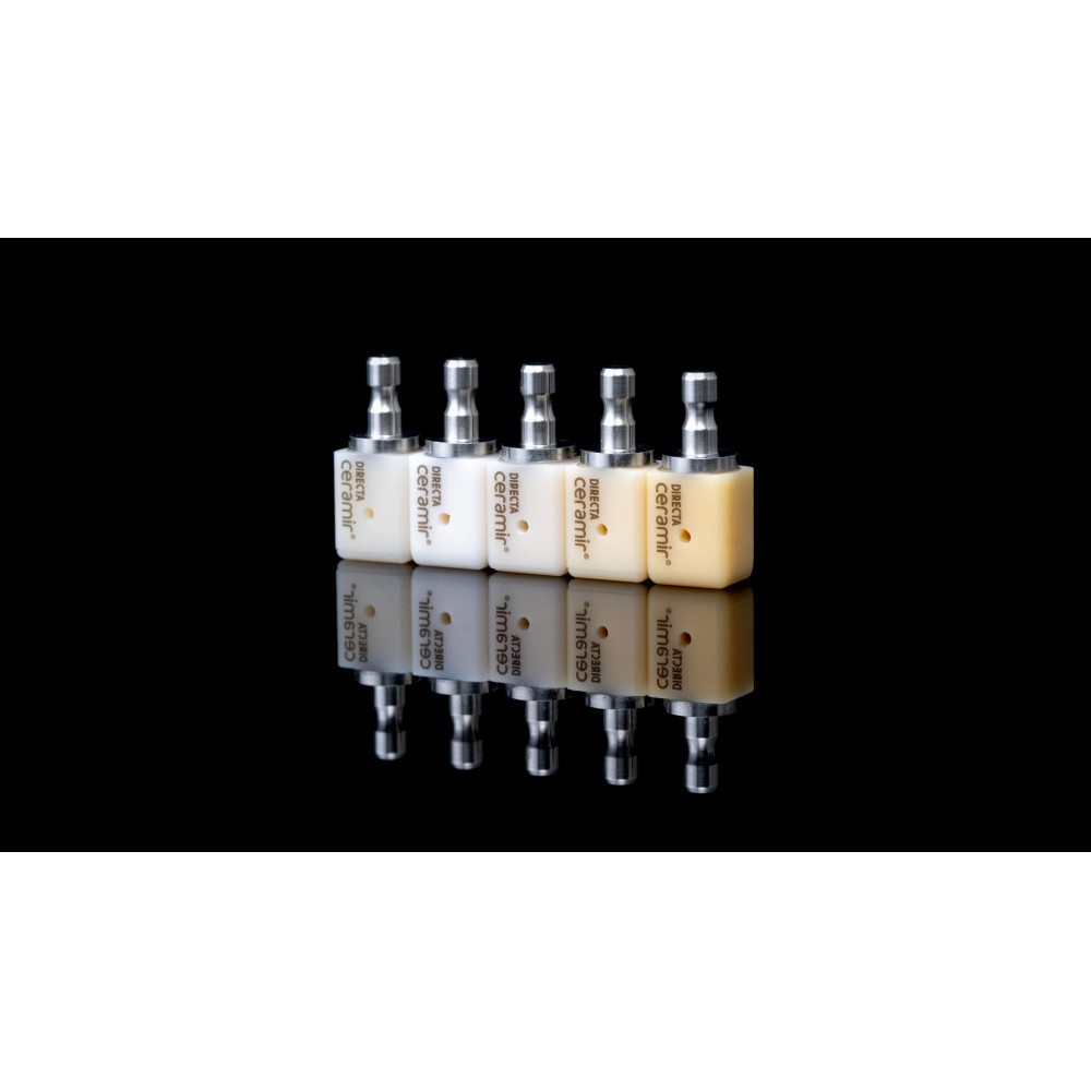 Ceramir CAD/CAM i-BLOCKS haben eine dentinähnliche Elastizität und eine Festigkeit, die mit partikelinfiltrierter Keramik (Litihiumdisilikat) vergleichbar ist, ohne die Sprödigkeit von reiner Keramik zu haben.
