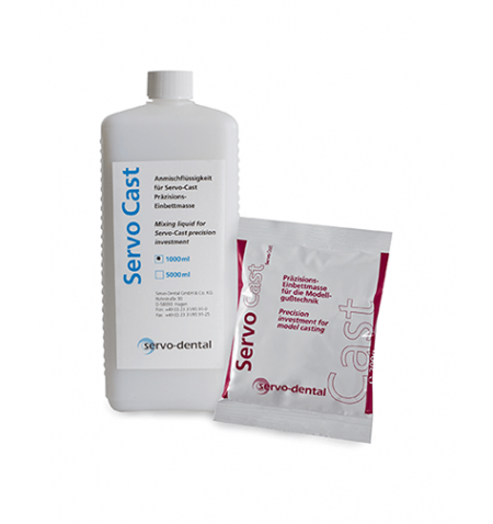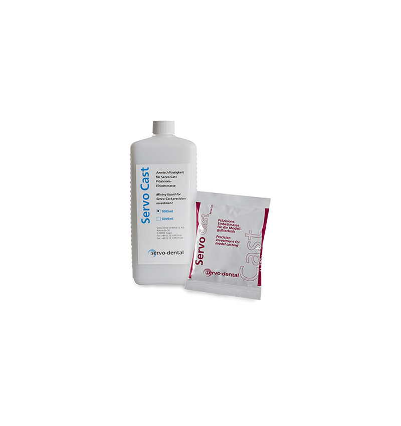 Servo-Cast ist eine Modellgusseinbettmasse von höchster Präzision für alle Polyäther- und Silikon-Dubliermassen (Muffel-Endtemperatur ca. 850 bis 950°C).