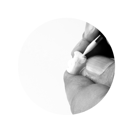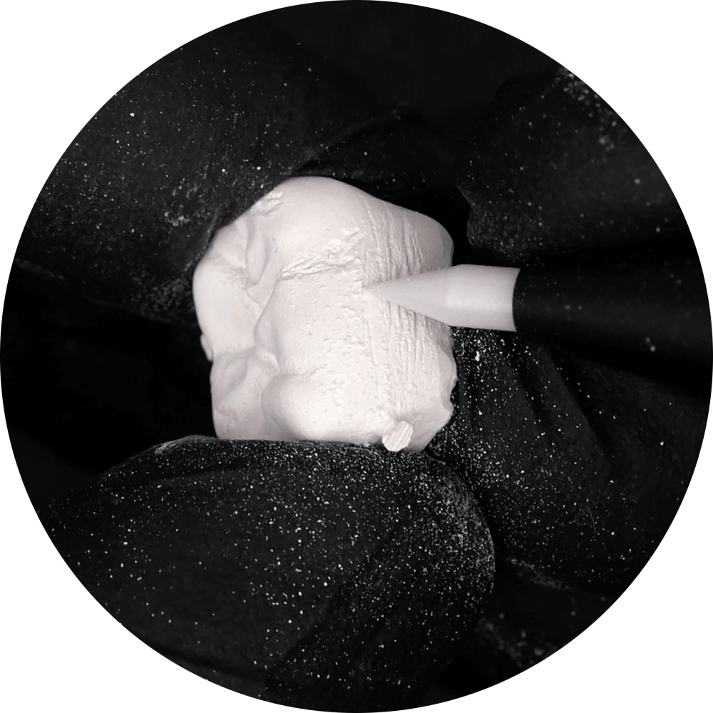 Da Zirkonoxid im ungesinterten Zustand ein empfindliches Material ist, haben wir einen Zirkonoxid-Ritzer entwickelt, mit dem sich eine erstaunliche Oberflächenstruktur auf ungesintertem Zirkonoxid erzielen lässt. Mit diesem extrem scharfen Ritzwerkzeug lassen sich sowohl Fissurenrillen als auch Risslinien erzeugen. Da es aus Zirkonoxid besteht, wird zudem eine Kontamination des Rohmaterials verhindert.
