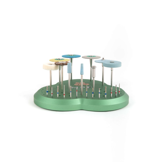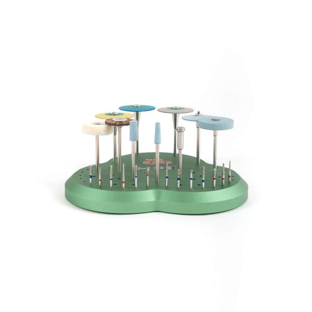 Der MPF Drill Stand ist ein einzigartiges Werkzeug zur Aufbewahrung all Ihrer Bohrer und rotierenden Instrumente, auf die Sie jederzeit leicht zugreifen können.