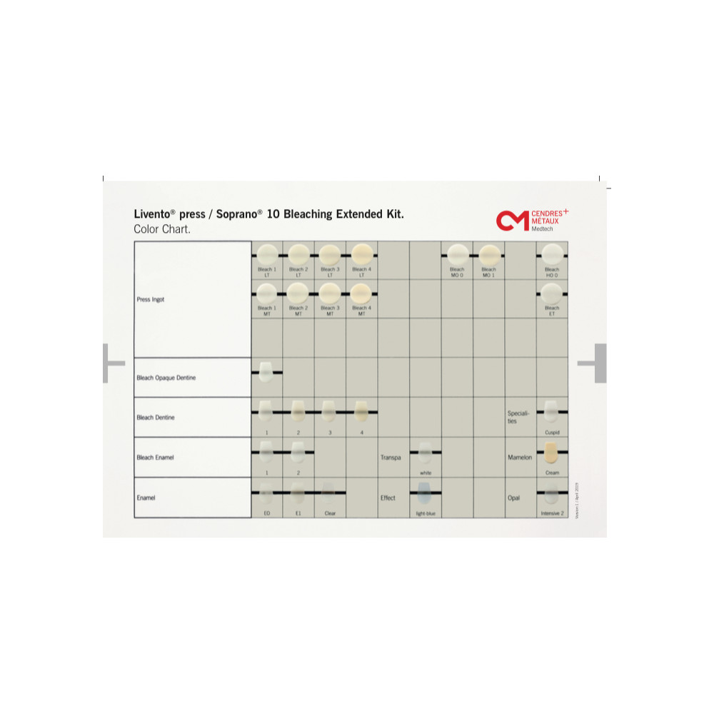 Bei Cendres+Métaux sind die Farben A-B und C-D exklusiv in separaten Kits erhältlich. Denn, Rückmeldungen aus den Labors zeigen, die Farben A und B aus dem VITA-ClassicFarbsystem1 stellen eine deutliche Mehrheit der Fälle dar, während die C- und D-Farben über Jahre in den Schubladen verbleiben. Auch die Materialspezialitäten Advanced, Gingiva und Bleaching bietet Cendres+Métaux in separaten Kits an.