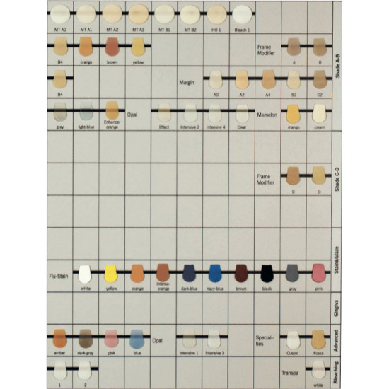 • Portfolio: Das Opakdentin ist zusätzlich zu den 16 VITA-Classic-Farbsystem auch in A0 und B0 erhältlich. Frame Modifier und Margin sind für Zirkonoxid-Verblendungen erhältlich.