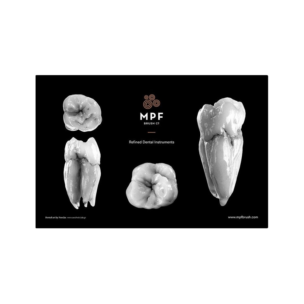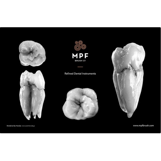 Diese stilvolle Tischunterlage aus Keramik und strapazierfähigem Kunststoff lässt sich leicht reinigen und präsentiert die beeindruckende Zahnarbeit desKey Opinion Leaders Nondas.